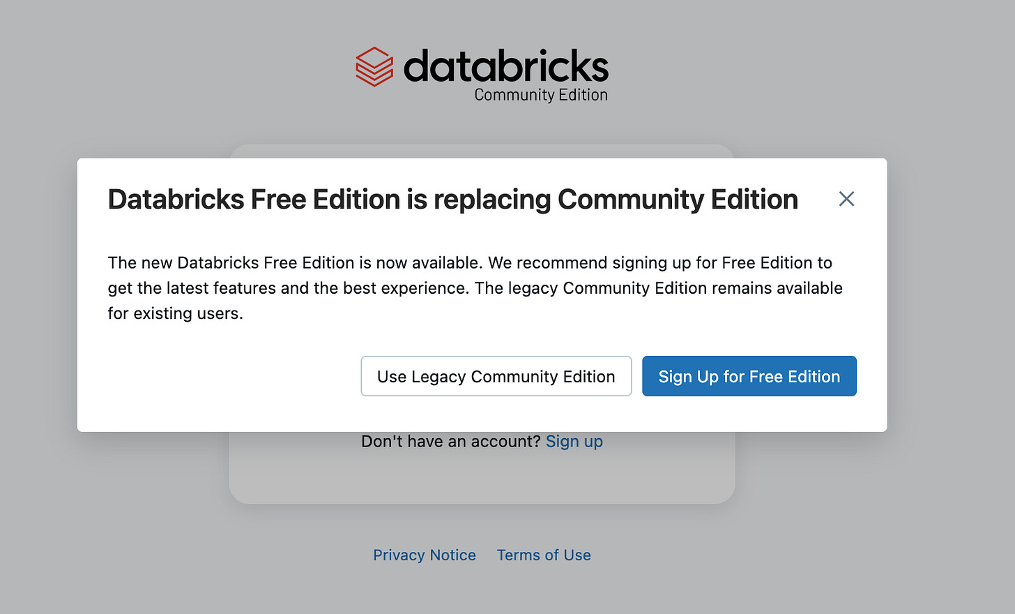 They did, kinda. The Databricks Community Edition offered an outdated and limited Databricks experience, mainly centered on notebook usage. Aside from missing many of the smaller improvements and refinements across the platform, the Community Edition completely lacked the now familiar Databricks SQL tools and Unity Catalog implementations. It was a stale, stagnant offering that sorely lagged behind the true Databricks commercial offerings4.